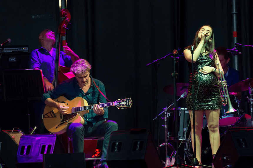 La joven trompetistas, cantante y compositora Andrea Motis y el saxofonista Bob Sands junto con la Big Band protagonizaron anoche, 26 de julio, el tercero de los cuatro conciertos programados en la Plaza de la Armería del Palacio Real de Madrid, dentro de la I edición de ‘Jazz Palacio Real’, y ante un aforo limitado de casi mil personas.