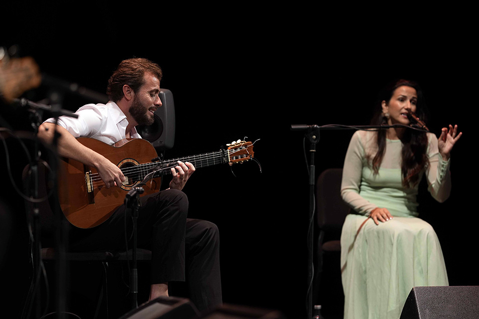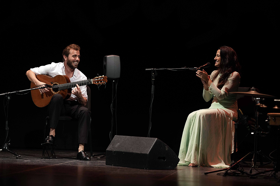 La otra cita del 10 de julio ha sido en el Teatro Góngora con el guitarrista flamenco Jesús Guerrero, quien ha interpretado Viaje imaginario. Un concierto que ha contado con la colaboración especial de Alba Carmona.