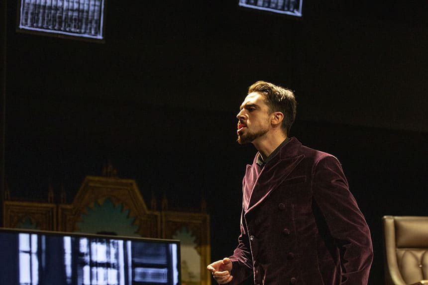 Aunque la ópera está ambientada en la Europa medieval, su director de escena, Alfonso Romero, ha creado una propuesta que tiende puentes entre pasado y presente, entre el concepto de avaricia como pecado capital y la creptomanía, esa obsesión patológica por el dinero que provoca que la persona descuide cualquier otro aspecto de su vida.