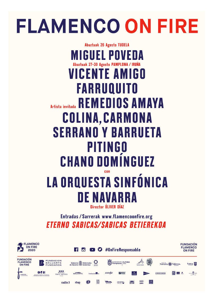 Los grandes conciertos de esta edición arrancarán el miércoles 26 de agosto en el teatro Gaztambide de Tudela con la actuación de Miguel Poveda. Un día después, el jueves 27, será el turno de Vicente Amigo en el Auditorio Baluarte de Pamplona/Iruña.