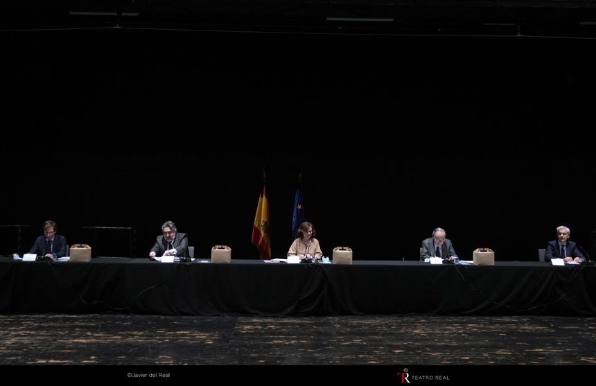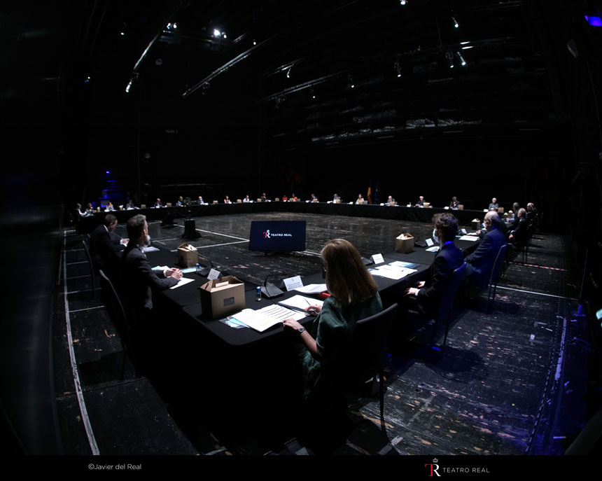 Debido a la excepcional situación en la que se ha producido la reunión del Patronato del Teatro Real en la mañana de hoy, la ubicación y la iluminación de la sala no son las mejores.