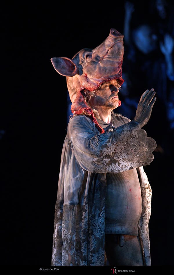 Esta segunda versión, con prólogo y 11 escenas, estrenada en 1946, es la que se verá en el Teatro Real. En ella, Juana de Arco (Marion Cotillard), en la pira que la quemará, recuerda desordenadamente momentos de su vida en un doble flashback por el que van desfilando una serie de personajes distorsionados: un juez-cerdo, un fiscal-burro, un jurado de ovejas, una masa ruidosa de hombres bestializados, pero también la virgen, santas y niños.