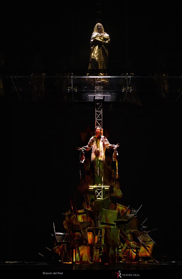 Entre los días 7 y 17 de junio, el Teatro Real ofrecerá 8 funciones de una nueva coproducción con la Ópera de Frankfurt, que une la cantata La damoiselle élue (La doncella bienaventurada), de Claude Debussy (1862-1918) -con libreto del poeta y pintor inglés Dante Gabriel Rossetti (1828-1882)- y el oratorio dramático Juana de Arco en la hoguera (Jeanne d’Arc au bûcher), de Arthur Honegger (1892-1955), con libreto del escritor Paul Claudel (1868-1955).