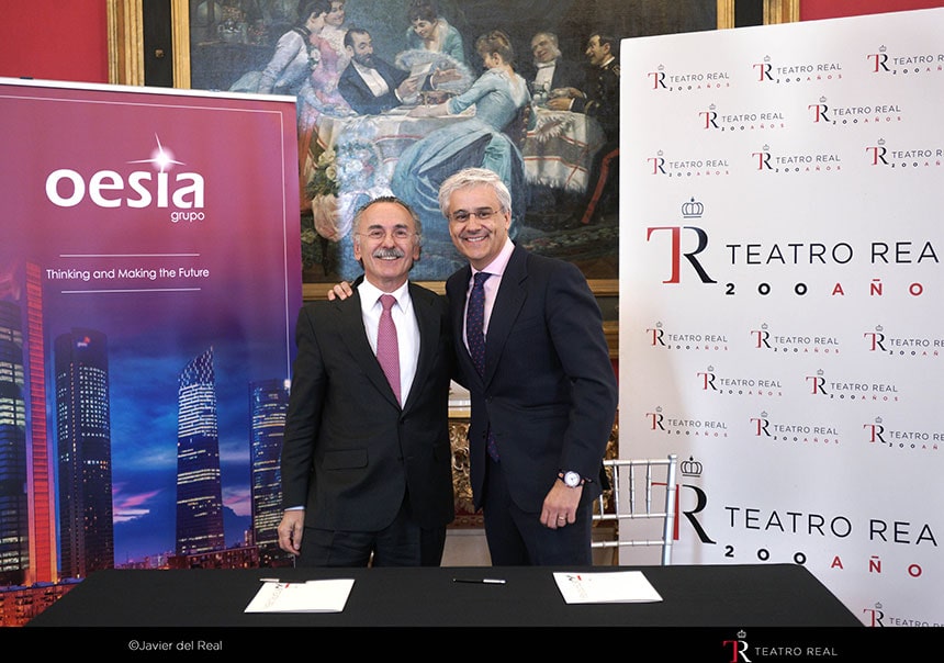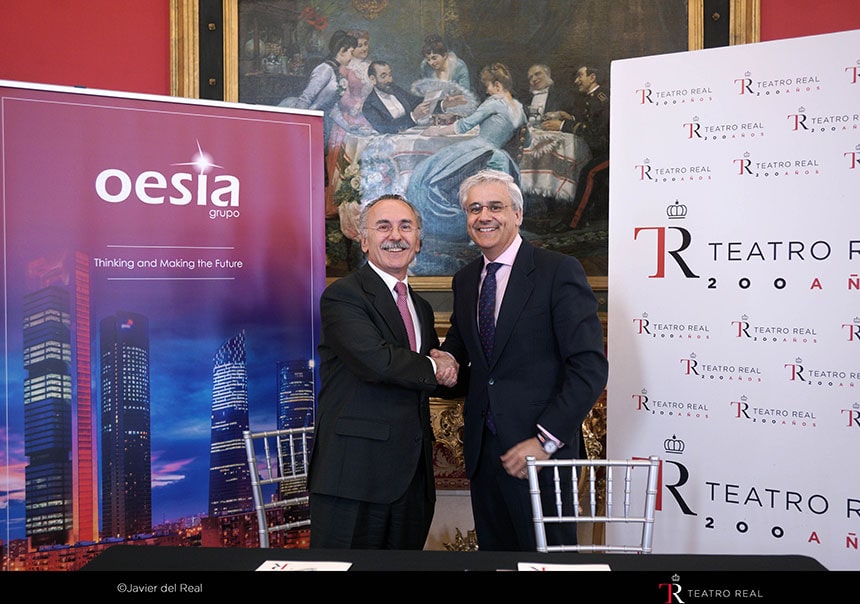 El director general del Teatro Real, Ignacio García-Berenguer y el presidente ejecutivo de Grupo Oesía, Luis Furnells, han firmado un acuerdo por el cual la multinacional tecnológica española eleva su categoría de Colaborador a Patrocinador del Teatro Real.