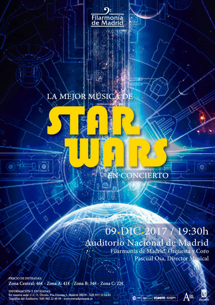 El próximo viernes 9 de diciembre la Orquesta y el Coro Filarmonía de Madrid, dirigidos por el Maestro Pascual Osa interpretarán la Banda Sonora de la Saga La Guerra de las Galaxias, Star Wars, en el Auditorio Nacional de Madrid.