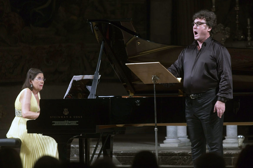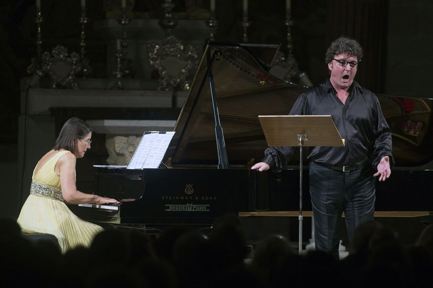 El recital se ha hecho en la iglesia del Carmen del Castillo de Peralada y ha estado acompañado al piano por Maria Prinz, que también ha debutado en el Festival ofreciendo una gran actuación. Se han presentado con un amplio repertorio en el que Tézier se ha sentido muy cómodo.