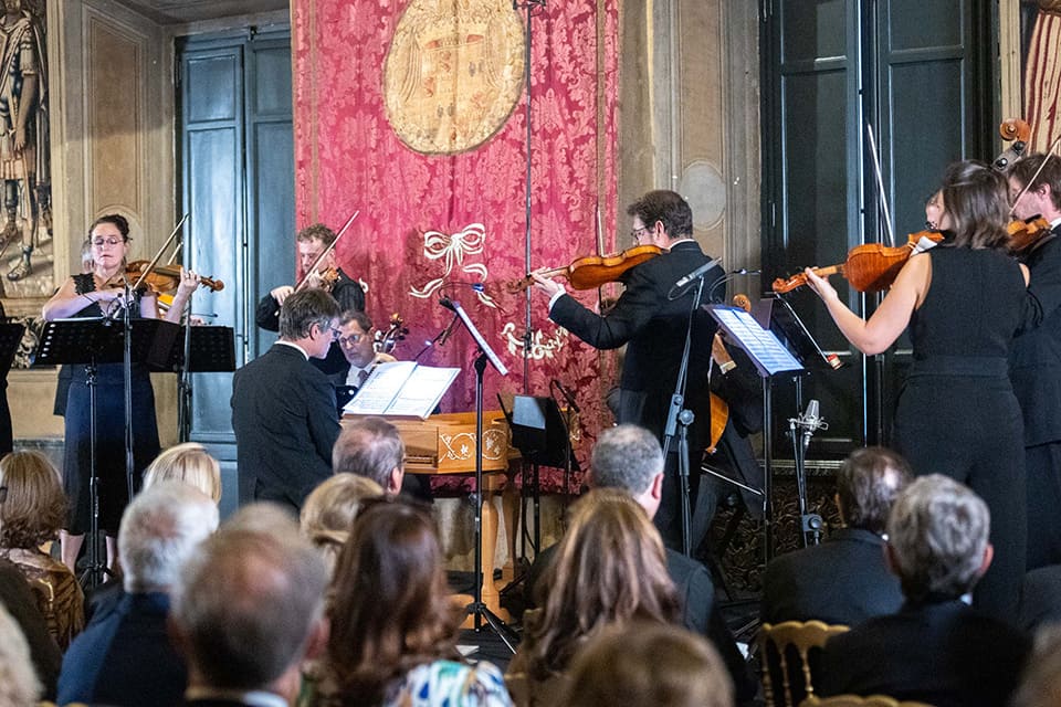 Ante los 120 espectadores que han llenado el salón, la formación residente de la edición de Pascua del Festival Perelada ha interpretado un recorrido musical por la forma del concerto grosso, género nacido en Roma que encarna el diálogo constante entre solistas y orquesta y las pasiones propias del barroco.