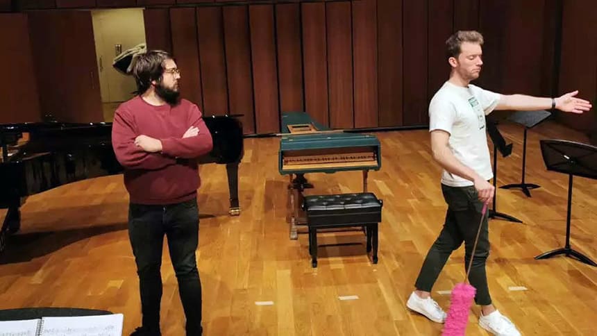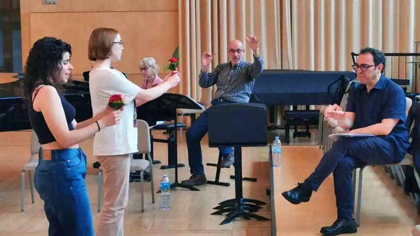 Dani Espasa ha explicado que es la primera vez que dirige alumnado de la escuela, una experiencia nueva y enriquecedora, junto con el trabajo conjunto con Belbel, con quien colaboró en el año 2000 poniendo música en la obra Els Temps de Planck.