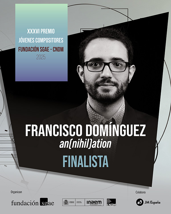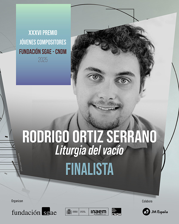 La Fundación SGAE y el Centro Nacional de Difusión Musical (CNDM) anuncian los cuatro finalistas de la 36ª edición del Premio Jóvenes Compositores Fundación SGAE-CNDM 2025, cuyo concierto final se celebrará el lunes 24 de noviembre de 2025, a las 19:30 hs, dentro del ciclo SERIES 20/21 en el Auditorio 400 del Museo Nacional Centro de Arte Reina Sofía (Ronda de Atocha, 2. Madrid), con entrada libre hasta completar aforo.