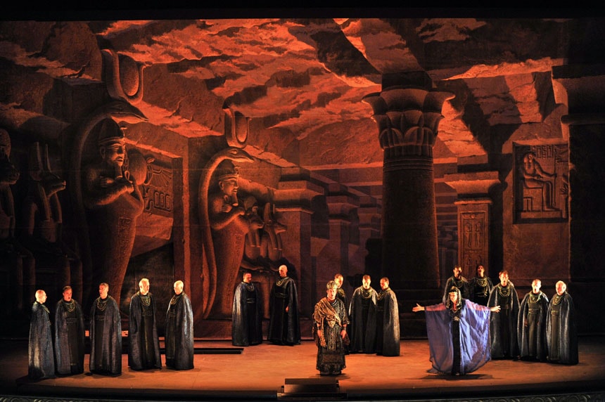 Esta ópera fundamental del catálogo verdiano narra el drama de Aida, una princesa etíope que, a causa de los designios del destino, se transforma en esclava de Amneris, la hija del faraón egipcio. Ambas forman un triángulo amoroso perfecto con Radamés, héroe de los ejércitos egipcios enamorado de Aida y a la vez amado por Amneris, pero sin ser correspondida.