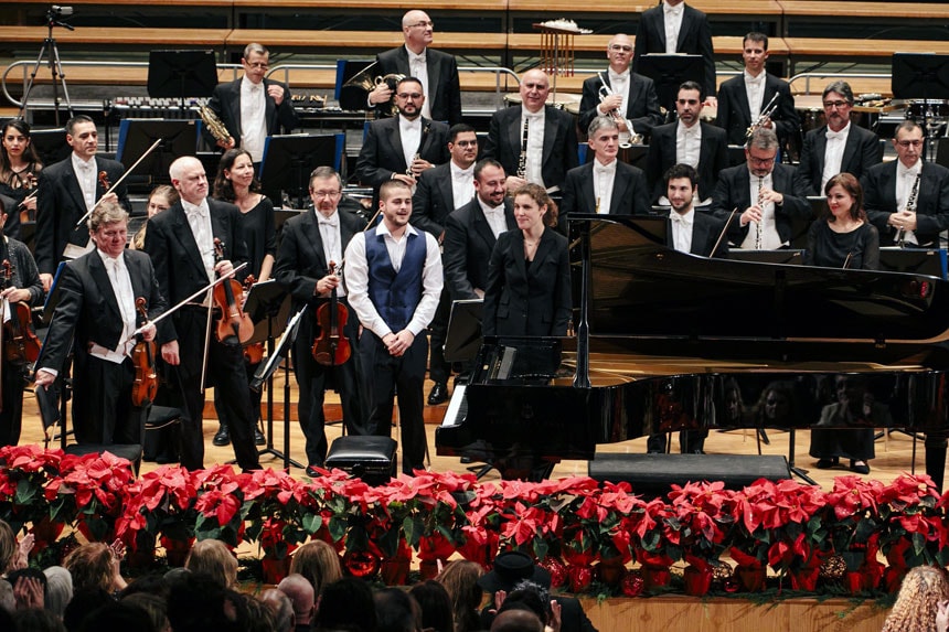 Al frente de la Orquesta Filarmónica de Gran Canaria debutaba la directora Corinna Niemeyer, que cosechó un gran éxito al frente de estos jóvenes: Yeray González (trompeta), Isaac Martínez (piano), Katia Nuez (violín) y Víctor Naranjo (piano). Al brillo de la propuesta contribuyó también la prestación del Coro de la OFGC que dirige Luis García Santana y el Coro Infantil de la OFGC que dirige Marcela Garrón.