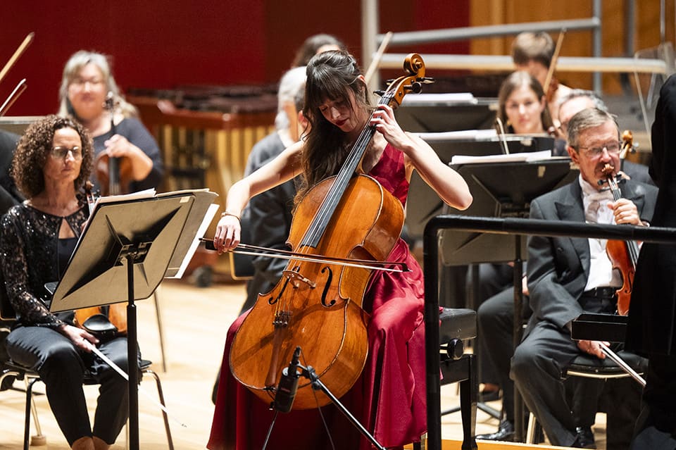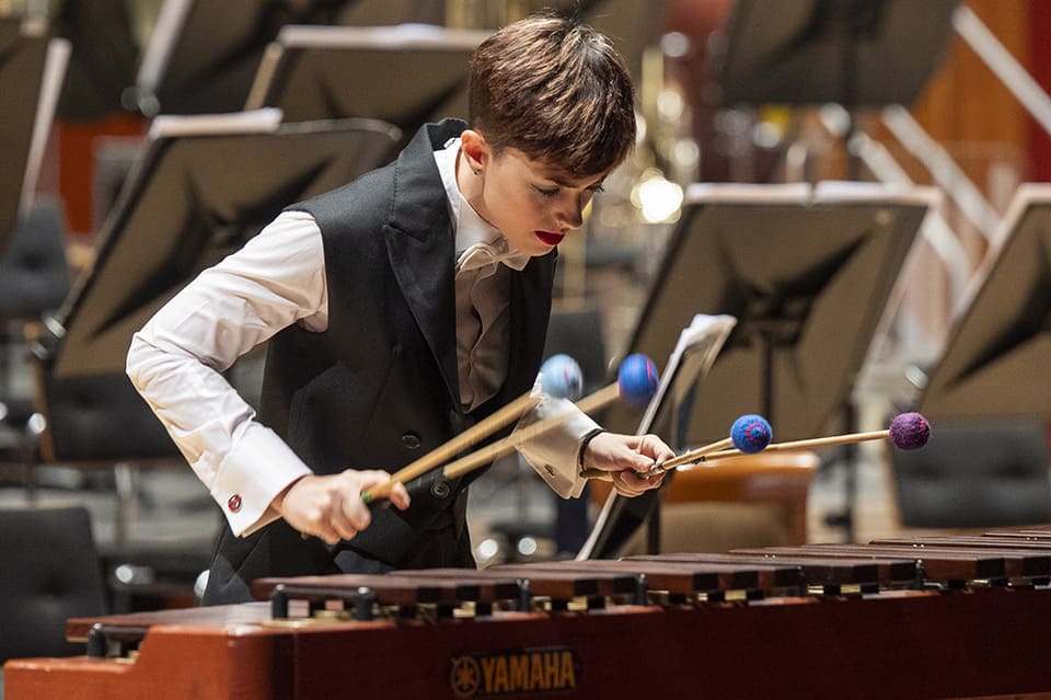 La directora polaca Ewa Strusińska se puso al frente la Orquesta Filarmónica de Gran Canaria, los Coros Adulto, Infantil y Juvenil de la OFGC y tres talentosos solistas jóvenes, la violonchelista Aurora Fibla Tejadas (solista de Bosques silenciosos de Dvorák), la percusionista Andrea Melián Alayón (en la pieza para solo de marimba Vermilion Bird de Heng Hui) y el violonchelista Luís Dias Canali (solista del Rondo en Sol menor de Dvorák).
