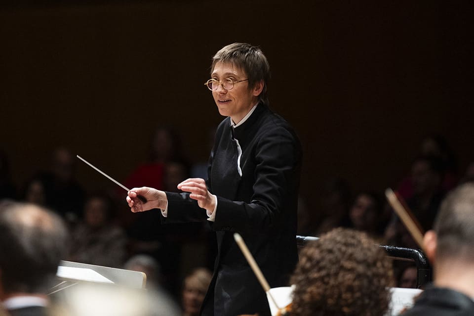 La directora Ewa Strusińska, en su debut al frente la Orquesta Filarmónica de Gran Canaria, dirigió un entrañable programa en el Auditorio Alfredo Kraus a los Coros de la OFGC y tres talentosos solistas jóvenes, la violonchelista Aurora Fibla Tejadas, la percusionista Andrea Melián Alayón y el violonchelista Luís Dias Canali.