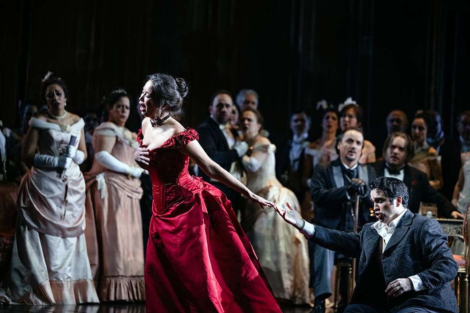 Inspirada en La dama de las camelias de Alexandre Dumas (hijo), es una crítica a la hipocresía social, realzada en la innovadora producción de David McVicar, que resalta la vulnerabilidad y soledad de la protagonista.