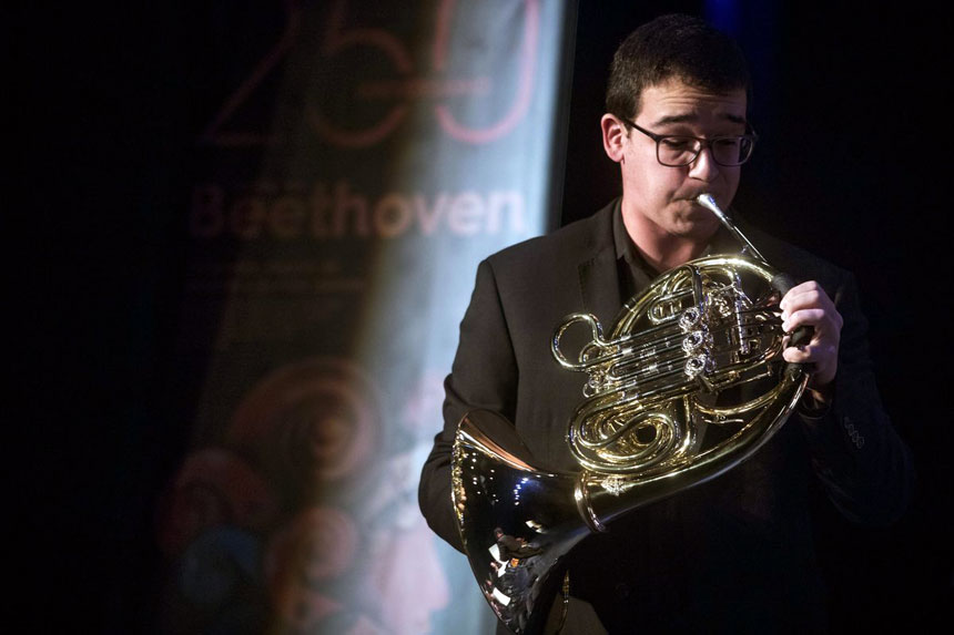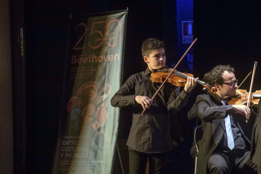 Comenzó el concierto de la mano de la Orquesta interpretando el primer movimiento de uno de los cuartetos compuestos por Beethoven arreglado por Leonardo Martínez para Orquesta de Cuerda; String Quartet N.º 11 en Fa m, Op.95 “Serioso”.