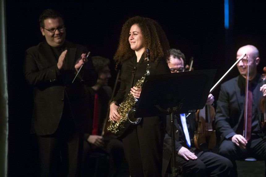 El punto final estuvo a cargo de la alumna del Conservatorio de Jumilla “Julián Santos” Paula Soriano Ibáñez, interpretando Concierto en Mib Op. 109 para saxofón y orquesta de cuerda de A. Glazounov.