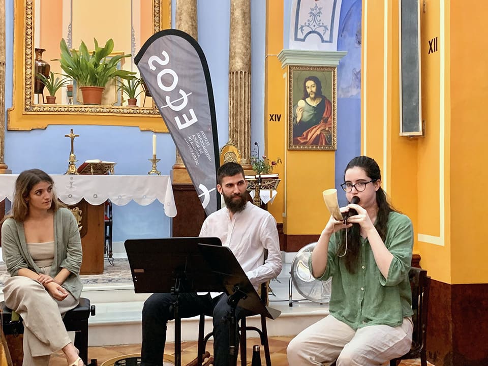 El ensemble completa su participación en el VII ECOS Festival de Sierra Espuña con un concierto familiar que ha tenido lugar esta mañana, y en el que los más pequeños han podido conocer los instrumentos en primera persona y contagiarse de la música antigua. Esta semana, el ensemble formará parte del ECOS Labs.