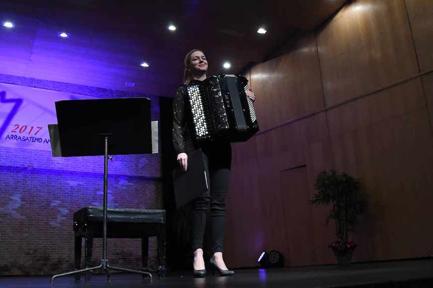 Por primera vez en la historia del Certamen Internacional de Acordeón Arrasate Hiria, el primer premio fue concedido ex aequo a dos ínterpretes. Pero es que además, por primera vez también en sus 25 años de trayectoria, el podium del premio mayor del concurso, fue copado por tres mujeres. Estos fueron los dos hechos más relevantes del palmarés del certamen arrasatearra, cuya gala final se celebró como es costumbre en el teatro Amaia.