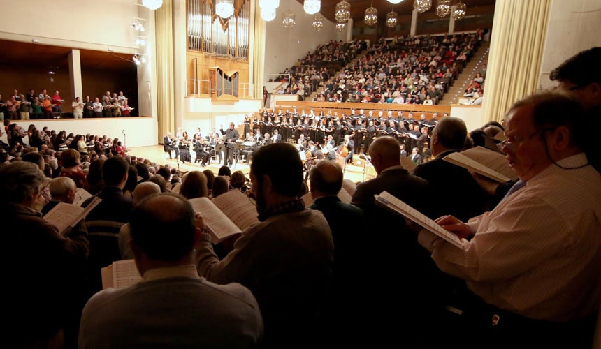 Los conciertos participativos de “la Caixa” ofrecen una experiencia única que reúne a cantantes aficionados a la música coral junto con orquestas, solistas y directores de reconocido prestigio internacional para interpretar algunas de las obras del repertorio sinfónico-coral más emblemáticas de todos los tiempos.