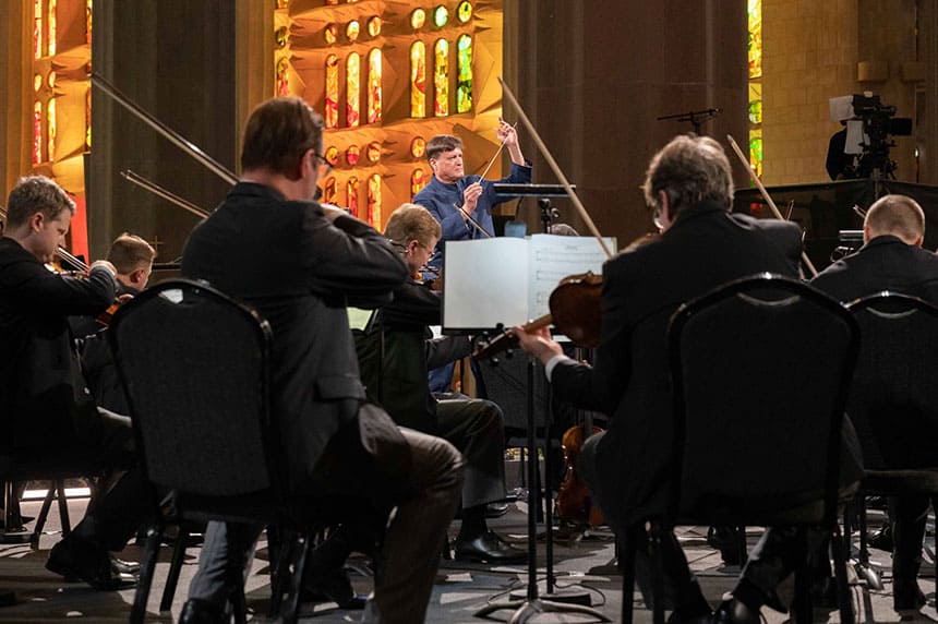 El programa musical se iniciará con el estreno mundial de ‘Elysium’, una pieza del compositor canadiense Samy Moussa, encargada por la Filarmónica especialmente para esta ocasión. A continuación, la Filarmónica de Viena interpretará la Sinfonía número 4 ‘Romántica’ de Anton Bruckner, célebre autor contemporáneo de Antoni Gaudí, y que fue estrenada el 20 de febrero de 1881 por la propia Filarmónica de Viena. El director será el maestro Christian Thielemann, gran experto en la potente y grandiosa música de Bruckner, que dirigirá a los más de 80 músicos de la Filarmónica de Viena.