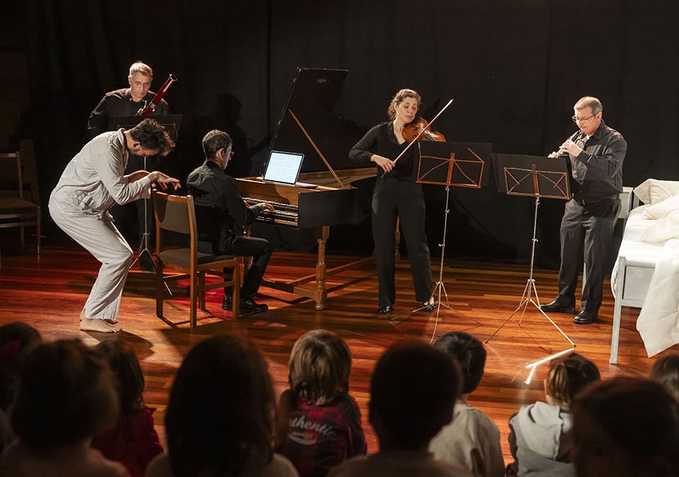 En este espectáculo, la música del periodo barroco nos transporta a un mundo de fantasía en el que un personaje salido de la estética de “la comedia del arte” jugará con el público a descubrir objetos, ritmos y melodías reales e imaginarios.