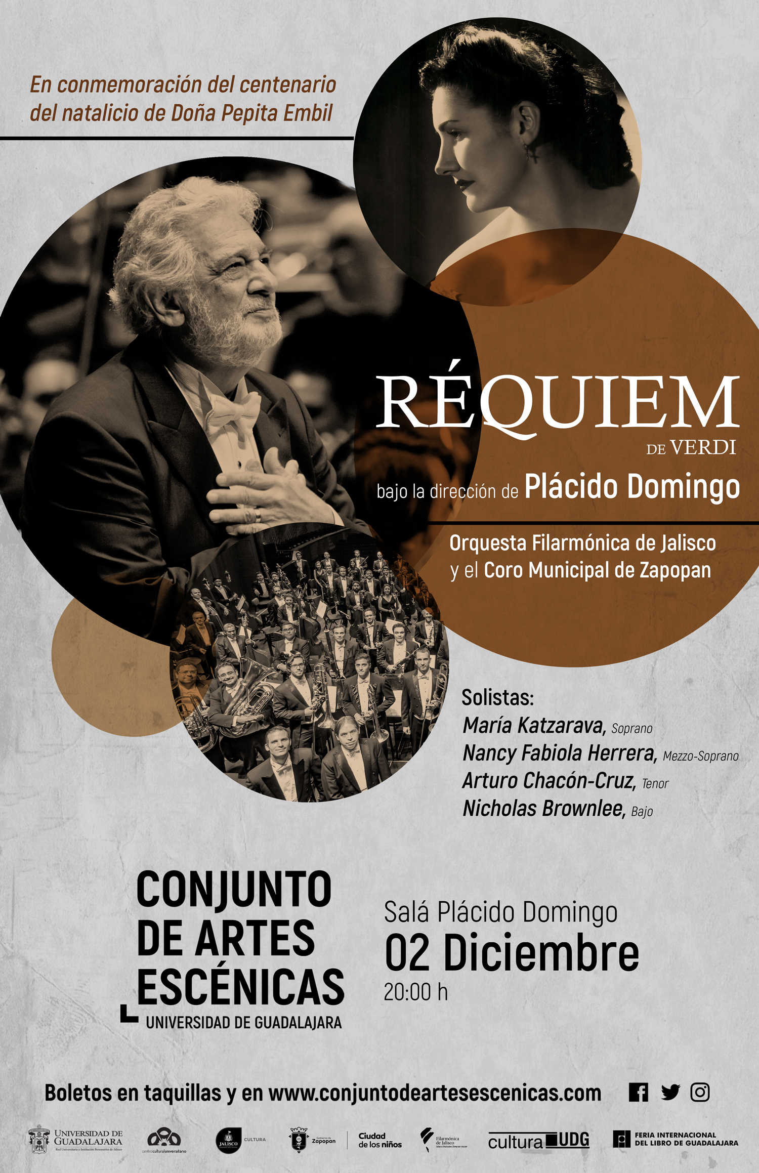 La parte vocal estará interpretada por el Coro Municipal de Zapopan y la soprano mexicana María Katzarava , la mezzosoprano venezolana de origen canario Nancy Fabiola Herrera , el tenor mexicano Arturo Chacón-Cruz y el bajo estadounidense Nicholas Brownlee. Tanto Herrera como Brownlee acompañaron a Domingo en la gala inaugural del Conjunto de Artes Escénicas, por lo que su regreso es especialmente emotivo.