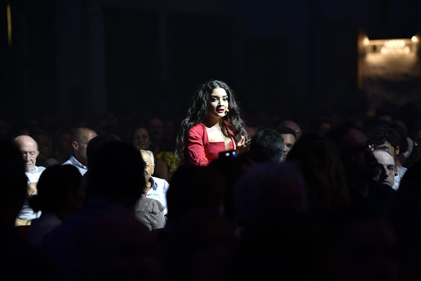 Tras eso, le dedicó unas palabras recitadas a la ‘Catedral del Cante’, se retiró del escenario y sorprendió apareciendo entre el público interpretando cantes de Levante entre aplausos. Zambra, seguiriya, fandangos y ‘La Estrella’, el tango de Enrique Morente que interpretó en su paso por el programa ‘Tierra de talento’ de Canal Sur -y que consiguió, en menos de 40 segundos, el voto del jurado-, completaban un set list que cerró por bulerías.