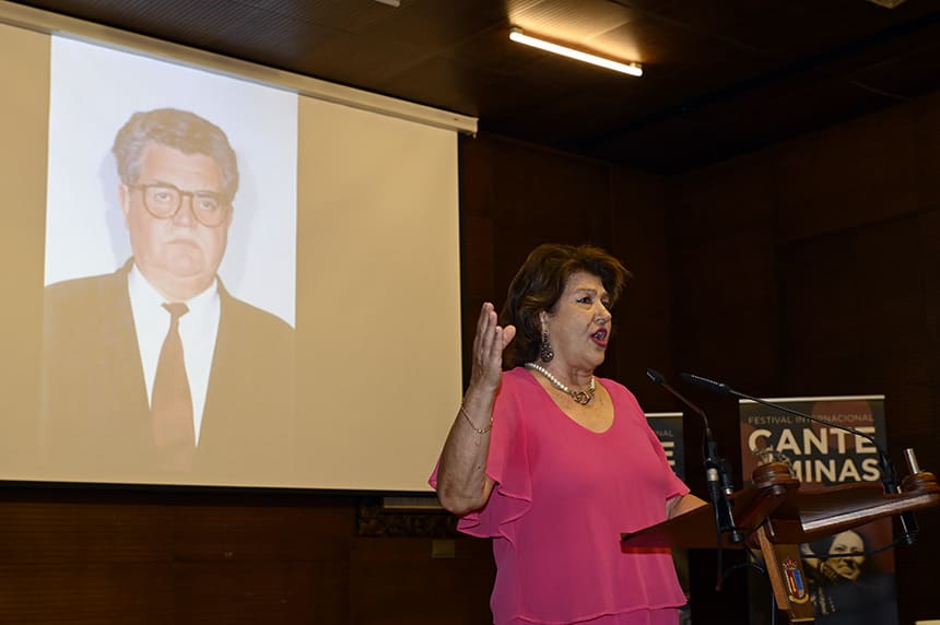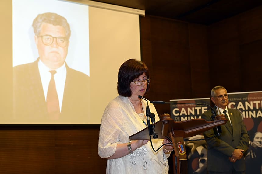 El ‘Castillete de Oro’ que recibió reconoce su vínculo, apoyo y fomento al Cante de las Minas. “No me esperaba nunca este galardón”, afirmaba durante su intervención, en la que recordó nombres como Francisco Ródenas o Salvador Alcaraz que formaron parte de su andadura en aquel momento.