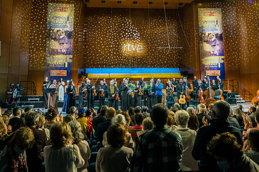 El concierto extraordinario de la Orquesta y Coro RTVE que tiene el hashtag de RTVE #UcraniaEnElCorazónRTVE, se suma a otras iniciativas solidarias con Ucrania de la Corporación RTVE y su recaudación se destinará al pueblo ucraniano a través de ACNUR, Cruz Roja y CEAR.