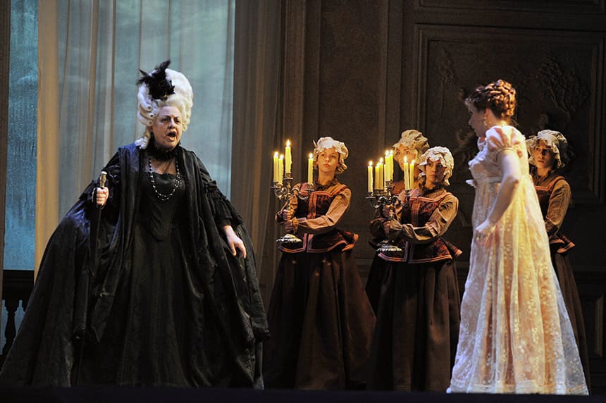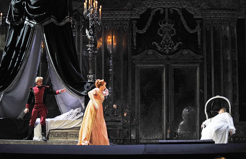 Pero el libreto es a la vez preciso en detalles y momentos —al final del tercer cuadro la misma Catalina entra en escena, se representa un ballet con claras reminiscencias de los tiempos de Mozart, etcétera—, y cualquier decisión que no se corresponda con la fidelidad a la letra puede quedar muy comprometida si no se toman las decisiones con valentía. La dama de picas pertenece a un tiempo de la ópera europea —la de Puccini, Giordano, etcétera— en la que el afán de precisión era alto, y eso sigue condicionando todavía, en gran medida, las producciones actuales. Son anclas que mantienen viva la tradición.